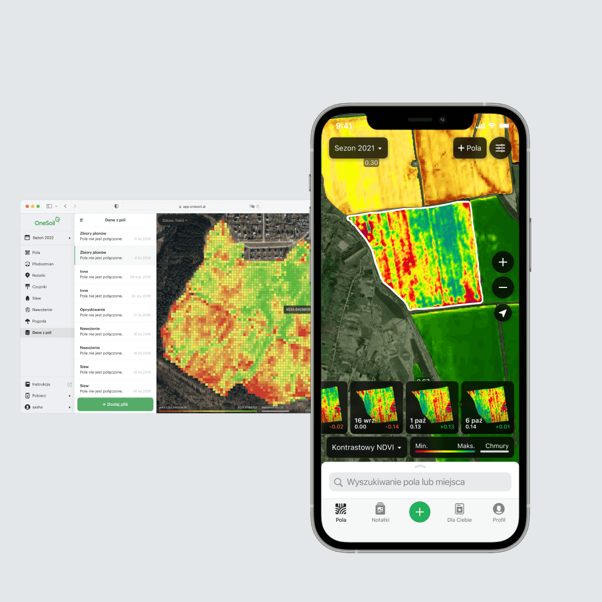 Platforma OneSoil składa się z aplikacji OneSoil, narzędzi OneSoil Yield oraz API B2B. Platforma oraz oferowana przez nią cyfrowa analiza pól wykorzystują naszą rozległą wiedzę o rolnictwie precyzyjnym oraz produkcji roślinnej zgromadzoną dzięki wieloletnim eksperymentom polowym, pracy ze zdjęciami satelitarnymi, uczeniem maszynowym oraz z własnymi danymi terenowymi dla milionów hektarów pól.